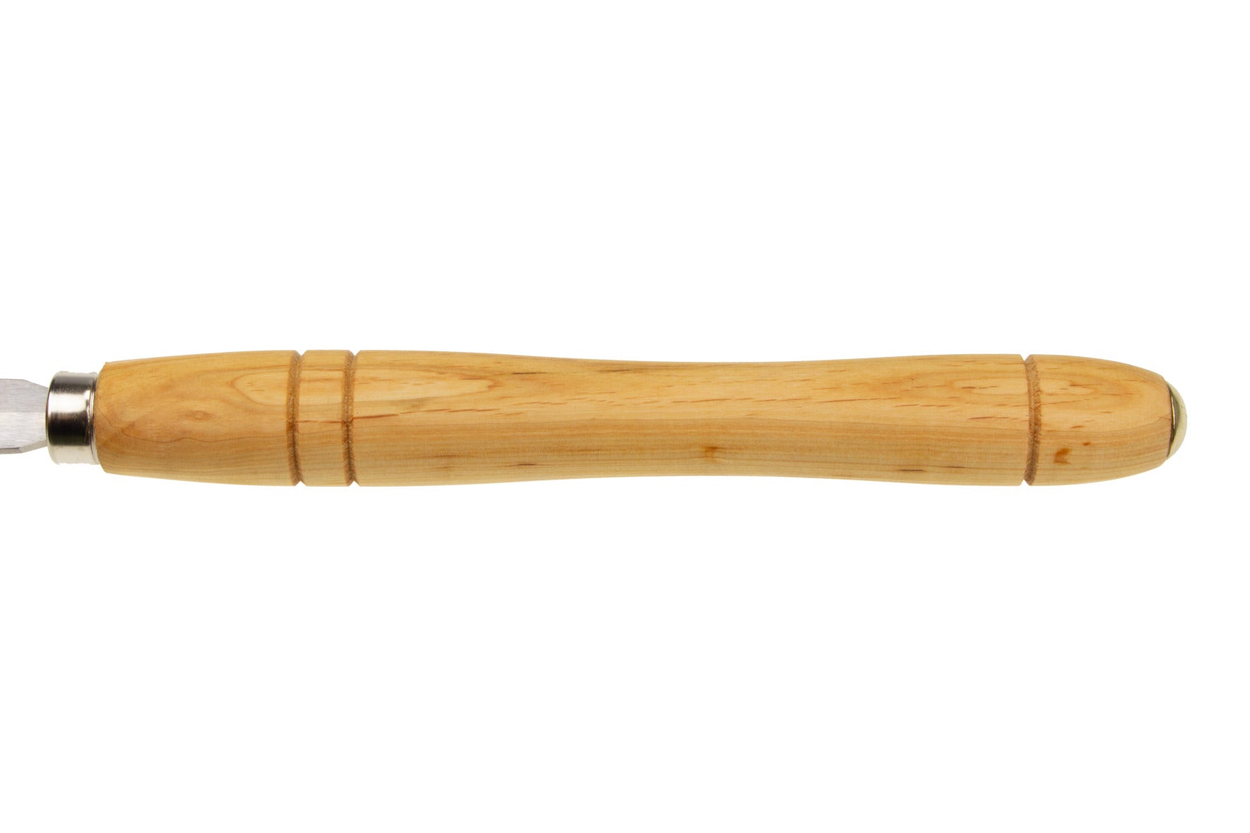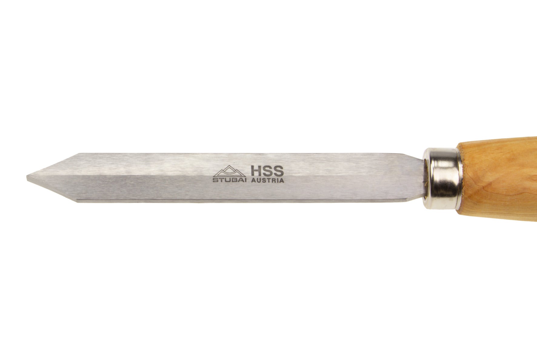 This HSS diamond parting tool is designed to provide clearance to the cut, reducing the risk of binding. Its special profile makes it ideal for woodturning. With its durable construction, it's perfect for woodworking projects. The tool's unique shape allows for precise cuts, making it a valuable addition to any woodturner's toolkit. It's a high-quality tool that's built to last.